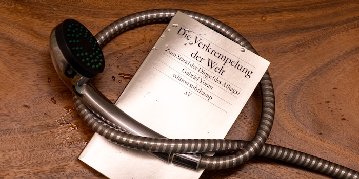 Yoran trapt in deze val in zijn gevecht met een doucheslang die vastzit aan een gloednieuwe kraan van een bekende fabrikant en hem dwingt om steeds nieuwe wendingen te maken. Geen wonder, het model is immers niet «twist free», d.w.z. voorzien van wartels. Wat vroeger normaal was, is nu een functie waarvoor je natuurlijk extra betaalt.