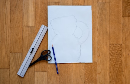Belangrijk: Controleer waar de container, bijvoorbeeld een sapglas of een wc-rol, straks komt te staan. Teken het zo nodig in met of zonder liniaal. Je bent vrij om de hoogte van je vaas te kiezen, maar hij moet minstens even hoog zijn als de container. Laat ten minste drie centimeter ruimte rechts en links van de rand van je getekende vaas, zodat je het glas of de wc-rol er later makkelijker in kunt steken.